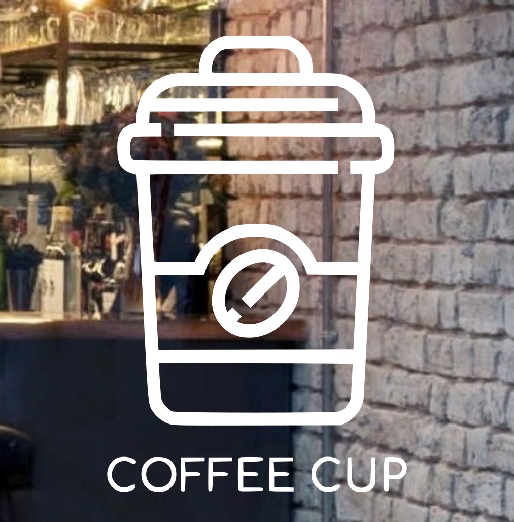 Reviews - Beautiful Coffee Cup Logo Design - Restaurant Glass Window Wall Door Stickers Decals