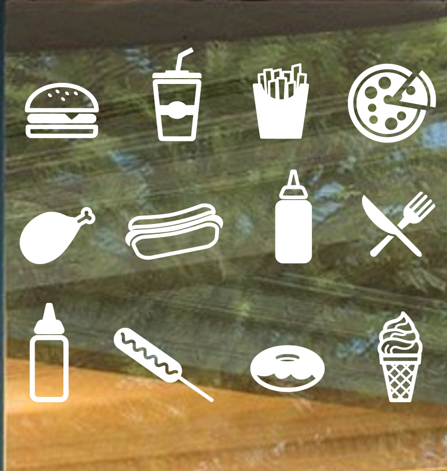 Set of Fast Food Icons - Restaurant Window Stickers Decals Signs